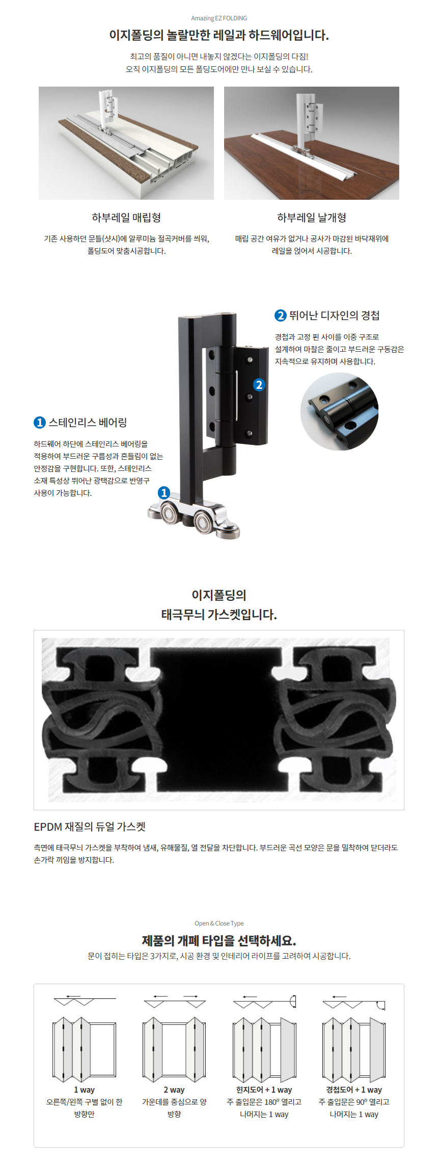 경첩과 하드웨어의 결합, 그리고 반영구 스테인리스 베어링으로 프리미엄 완성!