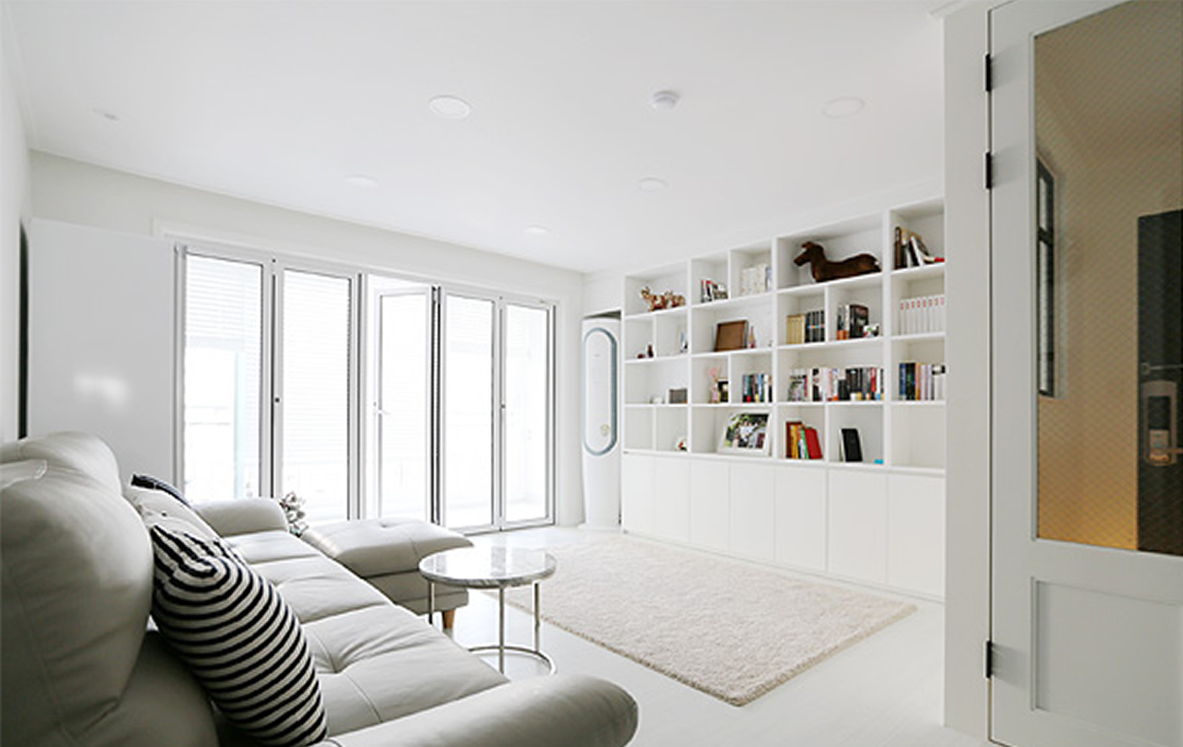 기존 창호의 철거나 목공 마감, 하부레일 매움 없이 가구를 바꾸듯~